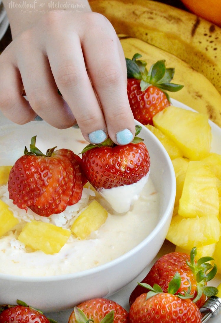 Personally, I happen to think that dips are the best party foods. You can serve all the chips and veggies you want, but without a good dip to dunk them in, it’s just not the same. And, let’s not forget the fruit. I make fruit dips all the time for snacking, but it’s always nice to have a sweet dessert dip for parties, too.