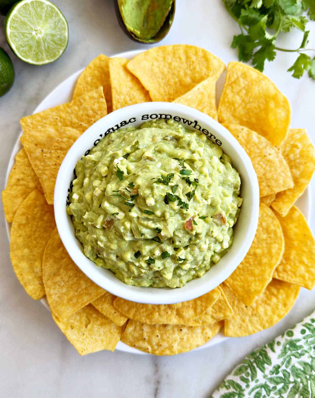 - Lime juice — to prevent the dip from turning brown. Sub lemon juice if you don’t have lime.