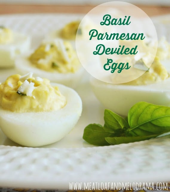I can’t believe it’s almost time to celebrate Easter. On that note, I’ve got another Easter side dish to share with you today, and this one is actually healthy. We always have deviled eggs with Easter Dinner, and I like to change up the flavors from time to time, just to keep things fresh. I was going to make some spicy eggs, but the family wasn’t too thrilled with the idea. So, I compromised and made these savory Basil Parmesan Deviled Eggs instead.