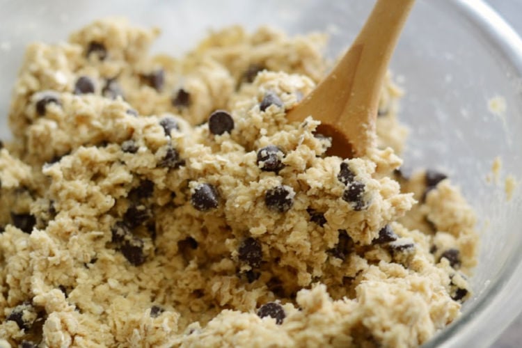 - Stir in the oats, and mix until well combined, then stir in chocolate chips