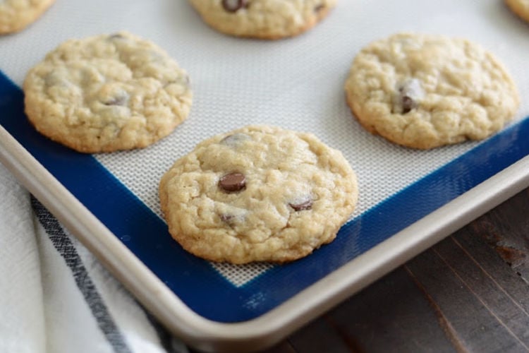 Store your oatmeal chocolate chip cookies in an airtight container. They can be left out at room temperature. Pro tip: put a slice of white bread in the container with your cookies–it’ll keep them nice and soft!