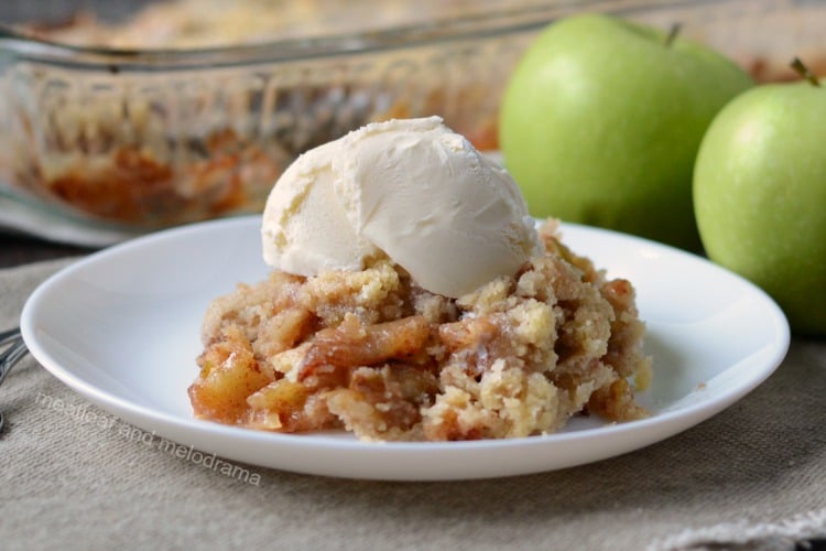 This easy recipe for apple crisp without oats makes the perfect fall dessert with cinnamon-spiced apples and a delicious crumble topping. Serve warm with a scoop of vanilla ice cream for a classic dessert the whole family will love!