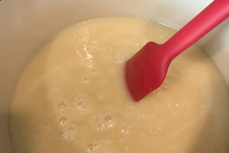 Start by melting butter, sugar and evaporated milk in a large, heavy-bottomed pot. I used my Dutch oven for this, and it was perfect for the job.