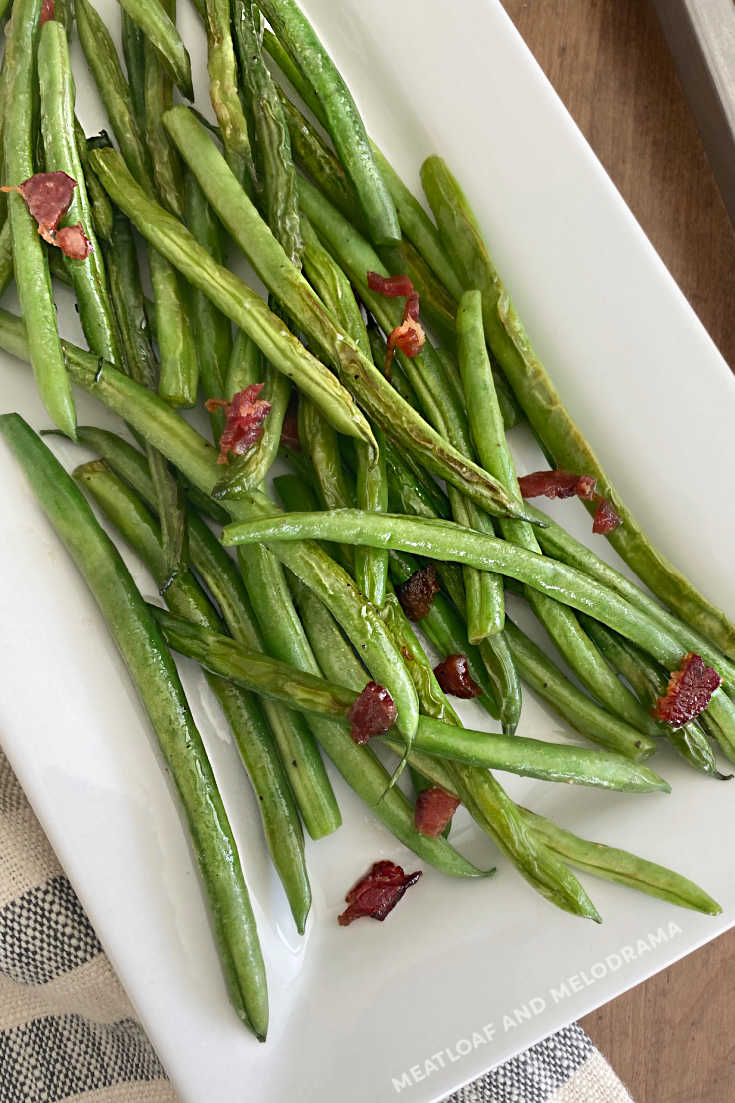 Easy Sauteed Green Beans with Bacon is a delicious side dish and a healthier way to cook fresh green beans. Perfect for holiday dinners or every day!